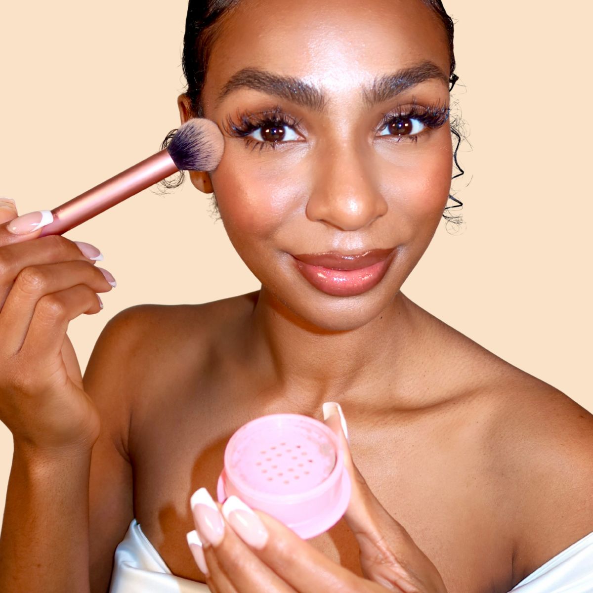 Coco: Mica, Boron Nitride, *Tapioca Starch, Kaolin, *Rosa Damascena (Pink Rose) Flower Powder, Gardenia Florida (Gardenia) Fruit Extract, Daucus Carota Sativa (Purple Carrot) Root Extract, Jojoba Esters, Maltodextrin, Citric Acid. *Organic. May Contain Iron Oxide (CI 77491), Iron Oxide (CI 77492), Iron Oxide (CI 77499), Iron Oxide (CI 77491). Pearl: Mica, Boron Nitride, *Tapioca Starch, Kaolin, *Rosa Damascena (Pink Rose) Flower Powder, Gardenia Florida (Gardenia) Fruit Extract, Daucus Carota Sativa (Purple Carrot) Root Extract, Jojoba Esters, Maltodextrin, Citric Acid. *Organic. May Contain Iron Oxide (CI 77492), Iron Oxide (CI 77491), Iron Oxide (CI 77499) Radiance: Mica, *Tapioca Starch, Boron Nitride, Kaolin, Jojoba Esters, *Rosa Damascena (Pink Rose) Flower Powder, Gardenia Florida (Gardenia) Fruit Extract, Daucus Carota Sativa (Purple Carrot) Root Extract, Maltodextrin, Citric Acid. May Contain Iron Oxide (CI 77492), Iron Oxide (CI 77491), Iron Oxide (CI 77499), Ultramarine Violet (CI 77007), Kaolin. *Certified Organic